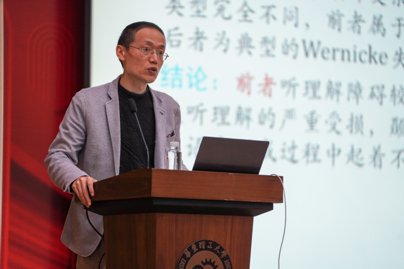 js6668金沙登录入口副院长韦晓保作了“认知神经科学视域下的语言研究”主旨报告。他指出了当前语言学研究的两个趋势,即在认知科学的大旗下,语言学作为一门介于人文科学和自然科学之间的交叉学科,其地位日益得到彰显,以及当前的认知语言学研究存在着一种关于人类语言认知属于“向外”还是“向内”的观点分野。他围绕语言的认知神经机制研究,就事件相关电位(ERP)及其分类等作了详细阐述,其研究的前沿性让与会听众大开眼界。